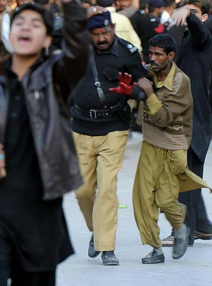 A photographic image shared on social media on Saturday seemed to symbolize the anger and frustration felt by many again highlighting divisions. The photo which appeared in Dawn and Al Jazeera articles on Rawalpindi and was labelled as “Pakistani Shiite Muslims assist an injured Sunni Muslim following clashes during an Ashura procession in Rawalpindi on November 15, 2013 (AFP, Aamir Qureshi).” Many claimed the image was a false representation. The blood stained man had clearly been attacked (that could be seen on a video where he was surrounded by a mob). What wasn’t clear was exactly who or how many had attacked him and who and how many (if any) had assisted him and what was his fate.