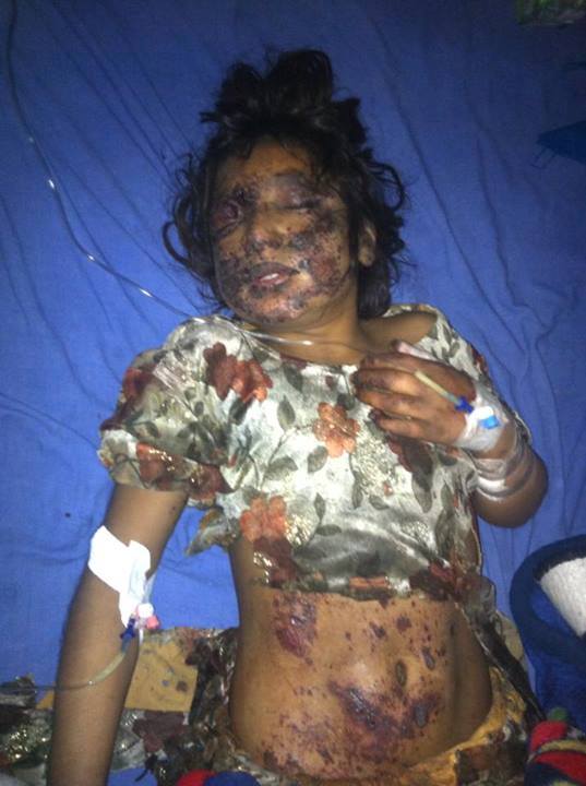 Girl, 7 year old “terrorist” brought to Lady Reading Hospital, Peshawar (Pakistan) emergency from Mir Ali, killed during recent assault from Pakistan military (photo, Dr Noor Wazir) and Hala Ahmad Albhairy, age 4 killed in Gaza following an Israeli occupation forces attack which targeted her family’s house in Khan Younis, 24 December, 2013 (photo, thanks Hamde Abu Rahma and Haitham al Khatib for sharing)