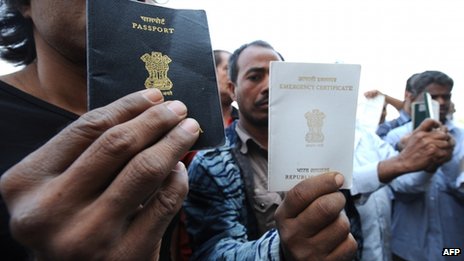 Migrant workers in Saudi Arabia after a crackdown checking their documents (AFP)