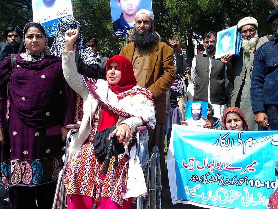 Amina Masood Janjua campaigns from a wheelchair, the stress of missing loved ones is taking its toll on the families