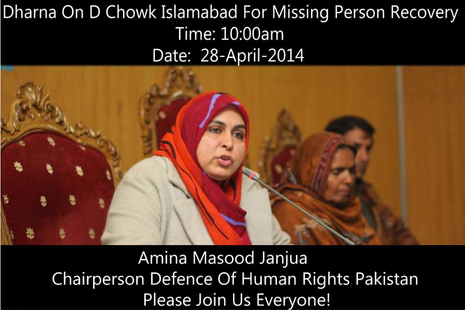 Amina Masood Janjua at Defence of Human Rights (DHR) Pakistan expressed her disillusionment once again at the failure of the state and courts to adequately address the issue of missing persons. In a poignant message to supporters on April 17th, Amina, whose own husband Masood became another “enforced disappearance” in 2005 wrote, “my case is fixed again today, kindly pray and issue appeal and support message to the whole world to support me in the struggle against enforced disappearance, I am risking my life for it.”