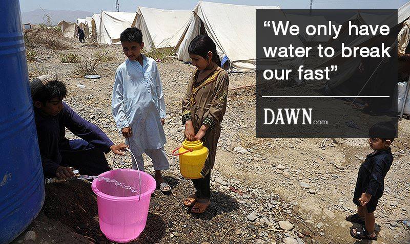 Children waiting for food at Internally Displaced Persons Camp Pakistan (DAWN)