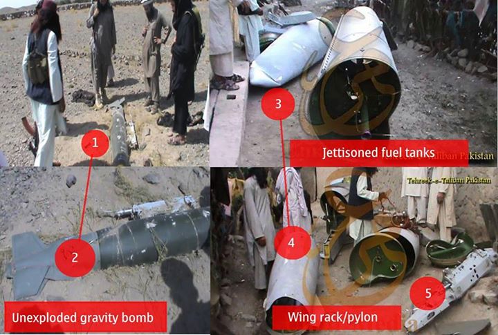 “We are debunking the propaganda pictures issued by the terrorist TTP, in response to their claims to have shot down a PAF F-16 aircraft. Following pictures were released by their propaganda cell, which we asked our aviation experts to assess and establish, which parts are shown in these pictures. As per our experts, these pictures are jettisoned drop tanks (fuel tanks), fuel rack and an unexploded gravity bomb. These items do belong to the F-16s, however they can be ejected if the Pilot desires to do so as dictated by the flight conditions. Thank you.”