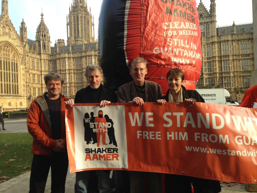 “the launch takes place from 12.30pm to 1.30pm in Old Palace Yard, opposite the Houses of Parliament, and will be attended by Clive Stafford Smith, the director of Reprieve, John McDonnell MP (Labour, Hayes and Harlington), Caroline Lucas MP (Green, Brighton Pavilion), comedian Jeremy Hardy, Andy Worthington, the director of the campaign, and others tbc. Those attending will be standing with a giant inflatable figure of Shaker Aamer, designed to represent how he is the “elephant in the room” when it comes to Britain’s dealings with the U.S”