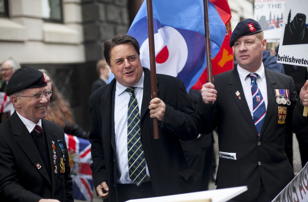Veterans with former British National Party (BNP) Chairman Nick Griffin known for his right wing views