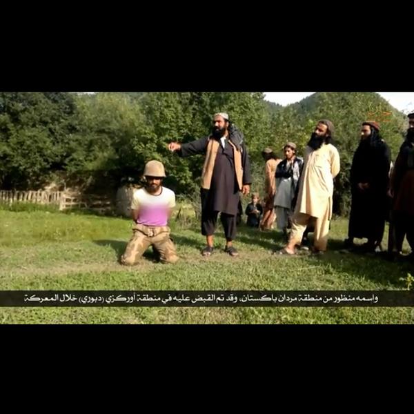 The video also shows a Pakistani soldier being beheaded by sword in the video. Nadim al-Muhajir translated that, “his name is Mandhur from the Mirdan area of Pakistan and his capture was in Orkaizi (Daburi) during the battle.”