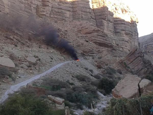 Burning car which was targeted by US drone strike, Yemen (Twitter contact)