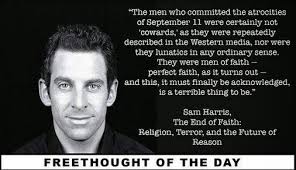 “The men who committed the atrocities of September 11th were certainly not “cowards” as they were repeatedly described in the Western media, nor were they lunatics in any ordinary sense. They were men of faith – perfect faith, as it turns out- and this, it must be finally be acknowledged is a terrible thing to be,” (Sam Harris, The End of Faith: Religion, Terror, and the Future of Reason)