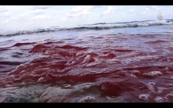 Life blood of the executed men drains into the sea