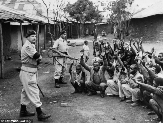Uprising: British police Guarding Mau Mau suspects in Kariobangi, Kenya (image Bettman/Corbis)