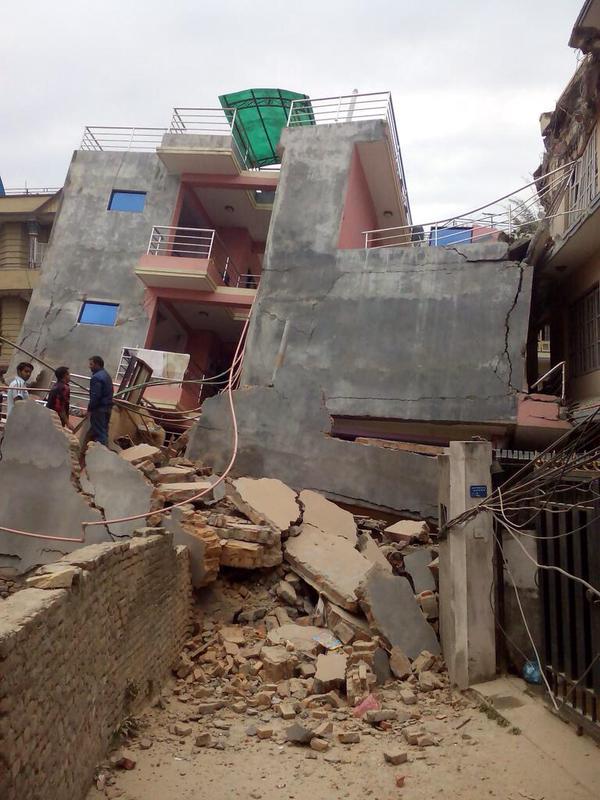Terrible #earthquake in #Nepal. Just saved ourselves. Don’t know how many killed. Roads are blocked already. pic.twitter.com/knmjz4u6uN”