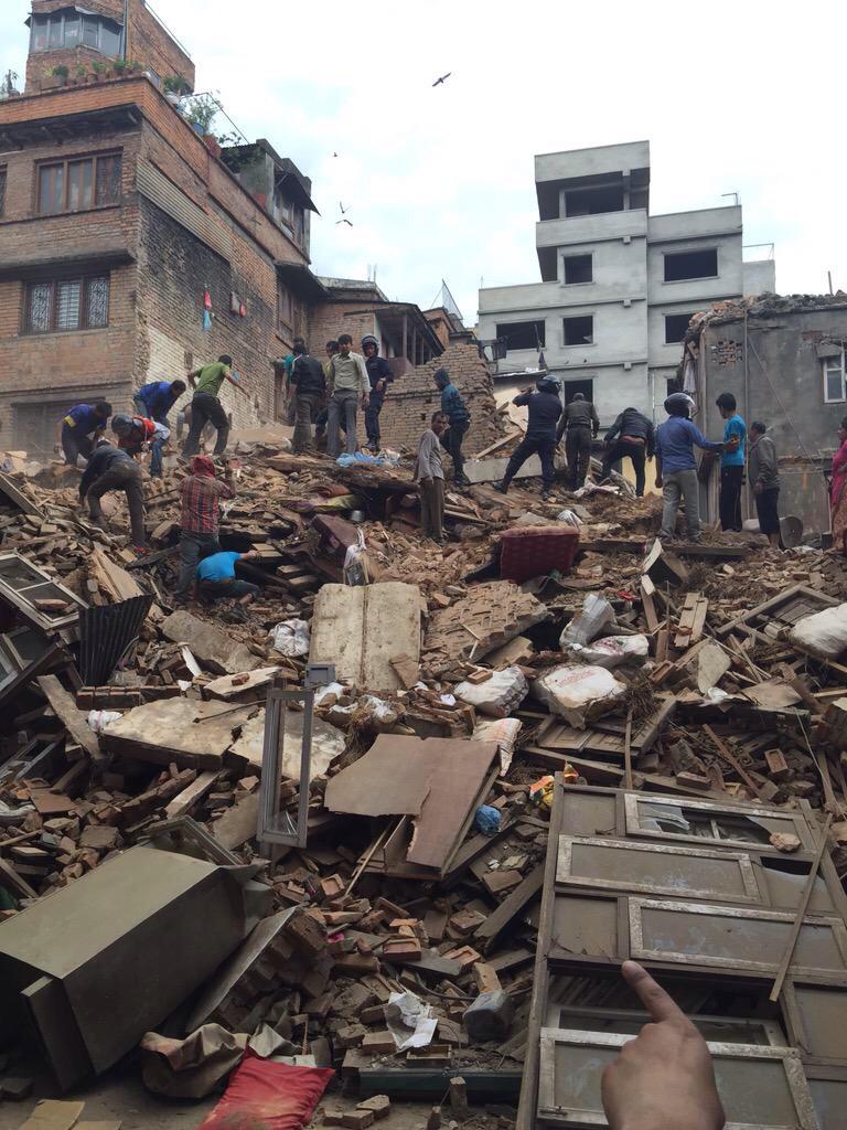There r people in the ground floor or broken house, we r still trying to take them out but quake keeps coming!! fuck!! #earthquake #nepal