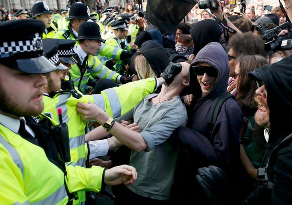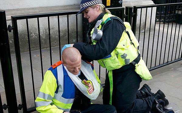 James Cropper posted the following video with the words, “police make arrests, chaos ensues Tories out, London”