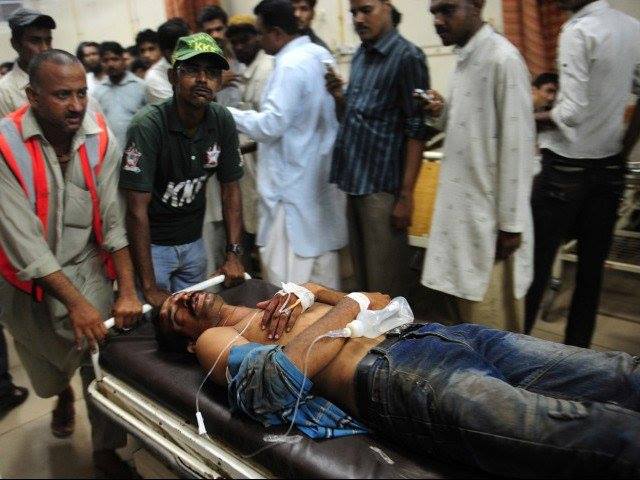 One of the injured from Karachi bus attack (image via Ansar Burney)