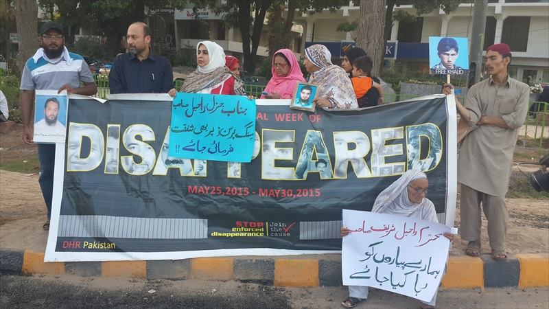 Defence of Human Rights (DHR) is the leading organization of missing persons in Pakistan which was founded by Mrs Amina Masood Janjua after the abduction of her husband Masood Janjua in 2005. This year on 30th July 10 years of Masood’s disappearance shall be completed. DHR Pakistan is endeavoring to eradicate enforced disappearance from around the world and especially from Asia. It is representing 2171 cases of enforced disappearance in Supreme Court of Pakistan as well as in Commission of Inquiry of Enforced disappearance, a body formed by government of Pakistan to look into the cases of enforced disappearances. It is known fact that many families of disappeared refrain from launching any official complaint for fear of reprisals yet Chief Justice of Peshawar High Pakistan informed last year that there are 3055 cases of enforced disappearance either pending before the court or have been adjudicated. This brings the total to 5226 of confirmed cases of disappearances in the country. DHR Pakistan demands that all the disappeared persons be surfaced immediately and enforced disappearance be declared a punishable crime after ratifying United Nations convention to protect all persons from enforced disappearance.