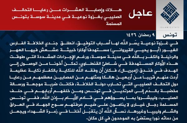 ISIS claims it was behind #Sousse attack: Abu Yahya Al Qayrawani targeted “vile dens of whoring, blasphemy & vice”.