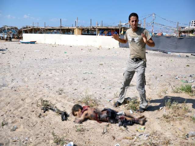 Child hit by shelling on Gaza Beach (Image via Global Research)