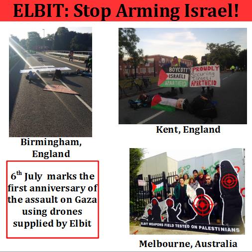 Elbit Systems factories in Broadstairs Kent, Tamworth and Shenstone in Staffordshire, and Melbourne Australia are all under occupation or are blocked. Please follow the Twitter feed for more information.