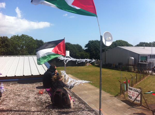 Campaigners are following on from the success of their 2014 campaign which saw protesters from London Palestine Action take over the rooftop at the Shenstone site and halt business for the day. See link for last year’s activities,