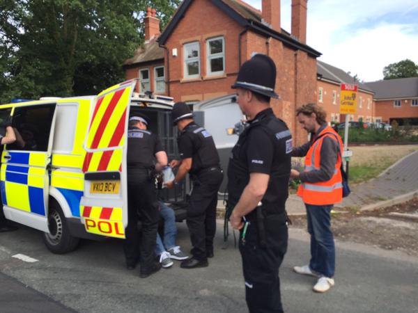Took this before being arrested. #blockthefactory. Currently being driven to police station. Tamworth?