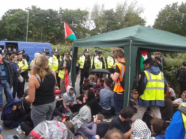 11 hours and we’re here stopping the manufacturers of murderous drones at #blockthefactory #Kent #StopArmingIsrael (Block The Factory)