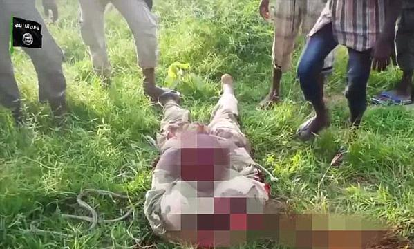 Boko Haram militants stand over body of decapitated Nigerian soldier