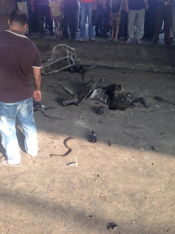 there are pieces of a destroyed car all over the place. police trying to clear the area. #Cairo #italianconsulate