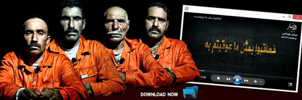 The latest film from IS entitled “Punish them with the same harm they have caused you” is a “like for like” vengeance video said to have been filmed in Anbar province. It focuses on 4 alleged “spies” Iraqi militia dressed in the familiar orange jumpsuits that are seen being made to watch video clips of atrocities related to Shi’a fighters. They then give their “confessions”.