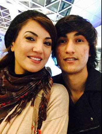 Reham, who changed her name to Khan before meeting him and Sahir (image tweeted by her son)