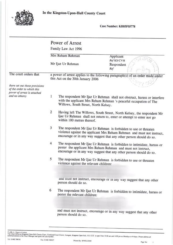 One can only feel sorry for the children of Pakistani journalist Reham Khan and Dr Ijaz Rehman caught up in the unsettling maelstrom of a relationship turned sour and the aftermath of a subsequent divorce. Sahir Khan, their son, has now gone public on alleged abuse naming his father by producing a “Court Order” and “Power of Arrest” document issued in the name of both parents, mother as applicant and father as respondent. The document gives a list of instructions and restrictions to Dr Rehman and states, “the court is satisfied that the respondent has used or threatened violence against the applicant or the following children”. (If for example a person makes an “allegation” of violence, the documents acts as a warning.)
