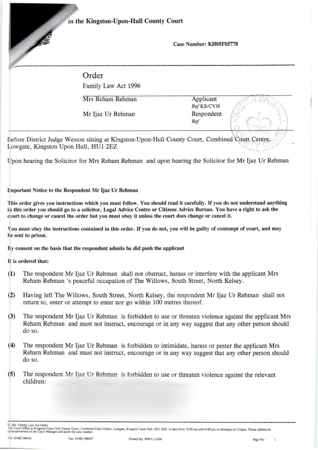 See below for Court Order, Power of Arrest document
