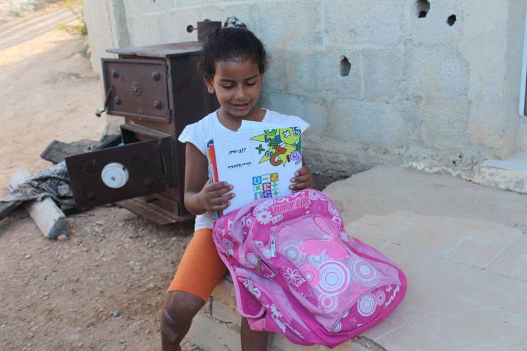 The school bills rang, but that pink school bag was still next to house door where she puts every night to take when she goes to school every morning. Her name is Isra’, she is 6 years old, first grade at school. But this time she didn’t go to school this morning because she was subject to investigation by Zionist occupation investigators and soldiers. She said: “they raided the house, yelled at us (mother and three little children), broke our beds, checked our school bags, broke everything in our room (the children’s room), and asked us about our father and money” she added “they took me behind the house, asked me about my father, I was scared and cried a lot, they asked us to raise our hands, I was afraid they might shoot us because they shoot a lot of people”. Her 10 years old Mohammad said, “the officer took me outside the house, I asked him to put on my shoes but he refused and dragged me out, he asked me about my father many times with his gun pointed at me, I told him he is at work, I said you must believe me, then I asked him to let me go to school because I have an exam, but he refused”. Ebtisam Nasar (the mother) said:” I was preparing breakfast for my kids when the shooting started around the house by Zionist occupation forces, and the soldiers were yelling and threatening to blow the house if I don’t open the door, the soldiers raided the house, took the children outside, messed up the rooms, and started questioning my three children without allowing me to be with them”.. Happened yesterday in Silwad village, near Ramallah, 14 October 2015.