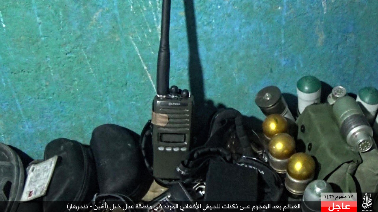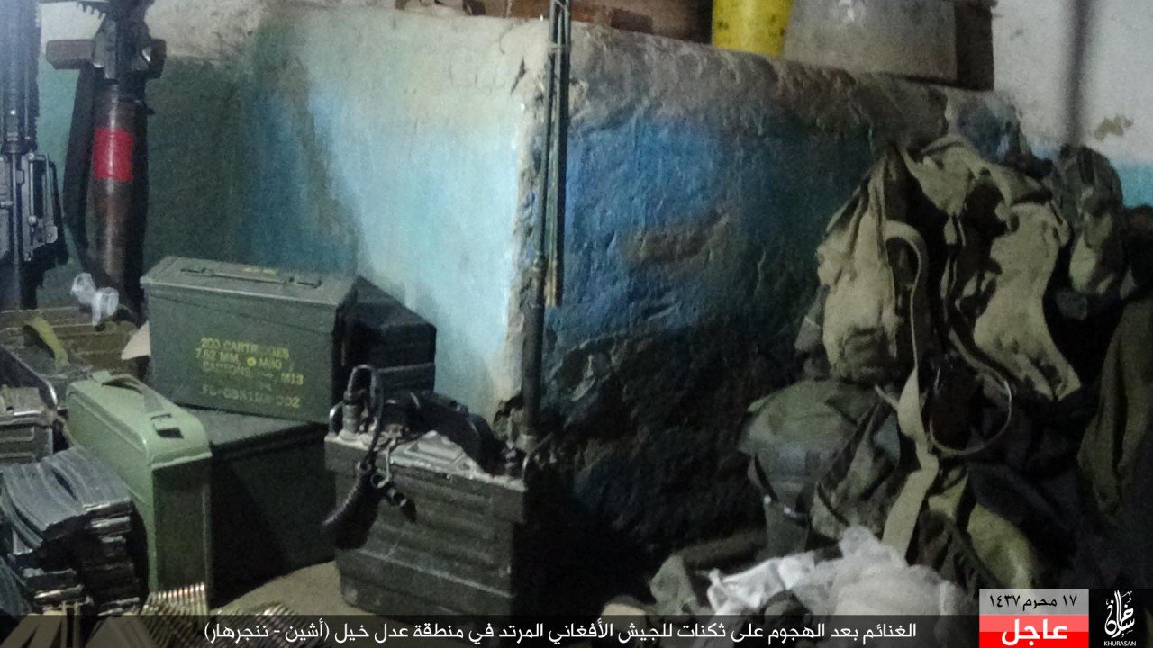 الغنائم بعد الهجوم على ثكنات للجيش الأفغاني المرتد في منطقة عدل خيل (أشين – ننجرهار)
