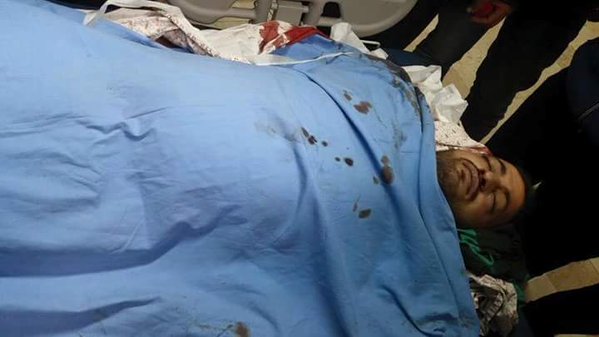 Today at 3:00 am, 21 terrorist Zionist occupation undercover force along with a woman who looked pregnant raided Ahli Hospital in Hebron, sneaked to the Surgery Department and stormed the room of the Palestinian Azzam Shalaldah who was shot few weeks ago by Zionist fascist soldiers, they handcuffed his brother Bilal to the bed, meanwhile their cousin Abdulla was in the bathroom, once he went out of the bathroom they opened fire at him, executed him, a bullet behind his ear, another in the chest and two in his hands, Abdulla died on the spot, then they kidnapped Azzam Shalalda whose critically wounded, 12 November 2015.”