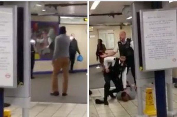 @BigTobzf posted a graphic video on Twitter which showed a large pool of blood by a turnstyle in the underground. A policeman can be seen across the station facing a male, and the words, “he stabbed someone” are audible on the video. A voice is later heard urging police to “taser him” several times adding “it didn’t work” as members of the public watch the drama unfold. There are shouts at the man to “get down”. An elderly gentleman wearing a cap and holding a carrier bag wanders towards the alleged attacker then realizing something is amiss turns back in the direction from which he came.