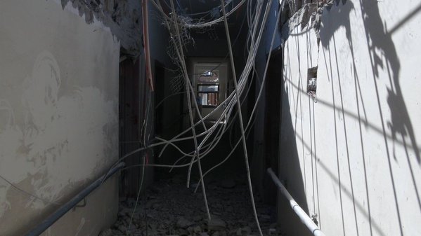 “This is the Blind People School destroyed by Saudi war criminals today in Sanaa Yemen” Yasser Arabyee