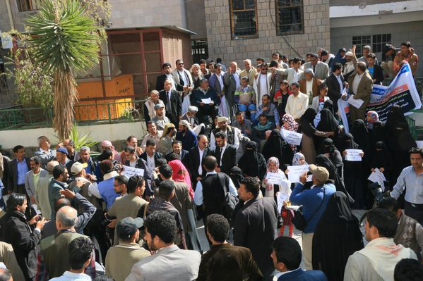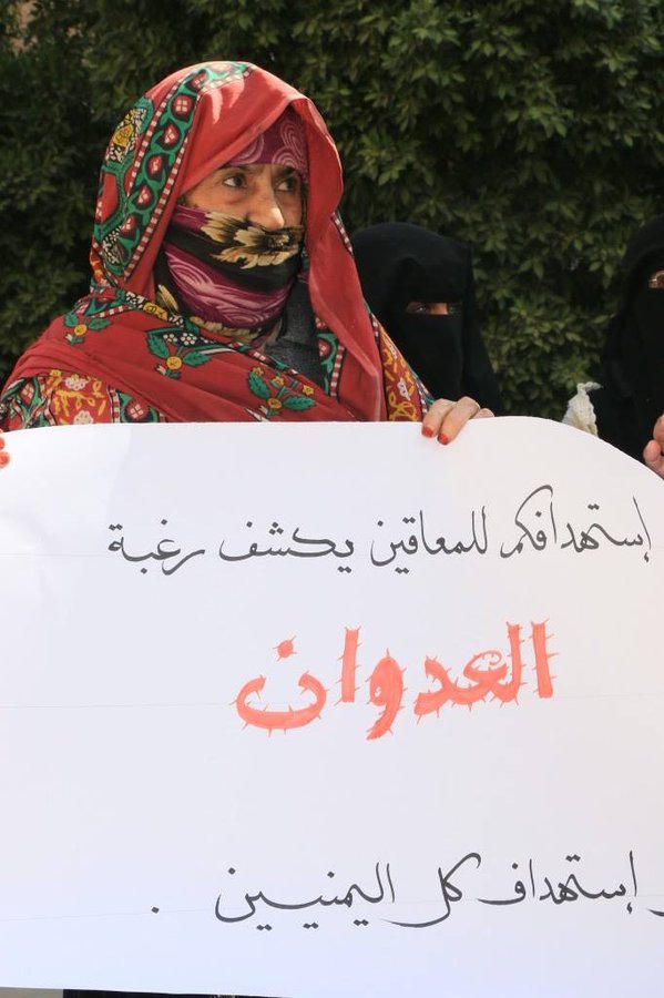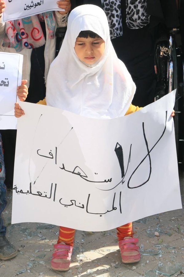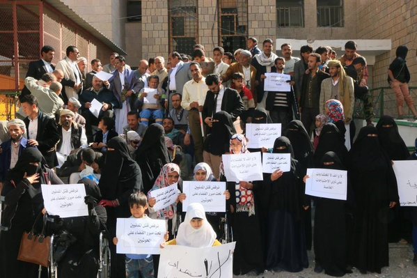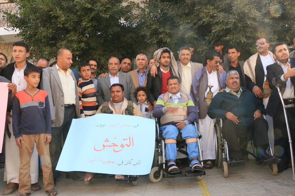 “Yemenis in Sanaa today appealing to the world for stopping Saudi war crimes against schools and disabled people”