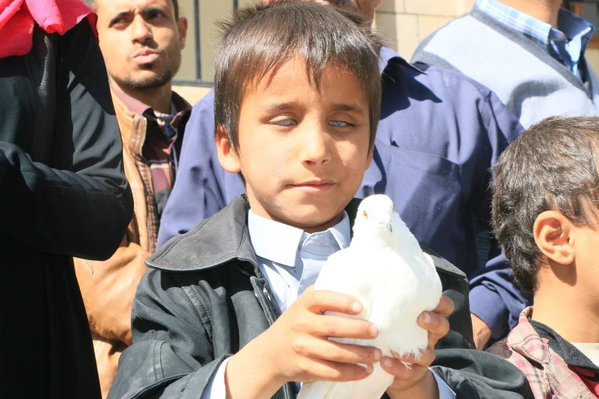 “Yemen blind boy appealing to humanity for stopping Saudi war crimes after destroying blind school in Sanaa Tuesday” Nasser Arrabyee