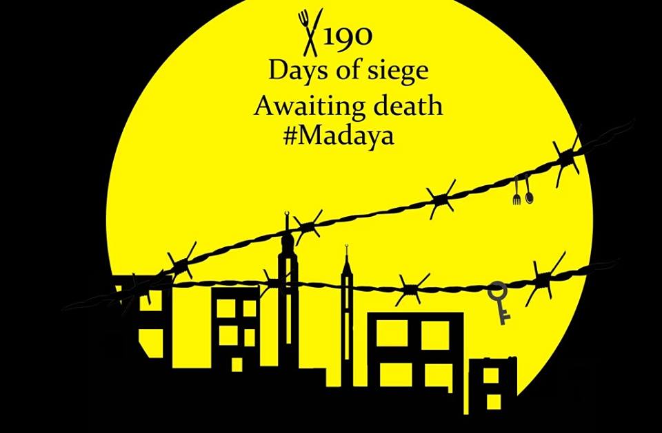 “activists said the siege of Madaya had been stepped up by the government and Hezbollah in retaliation for the rebel siege of Foah and Kefraya.