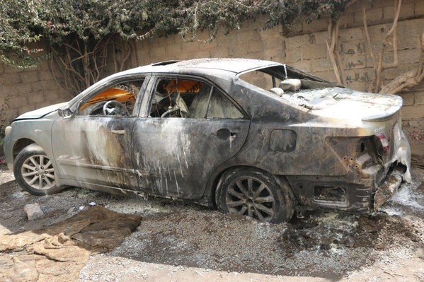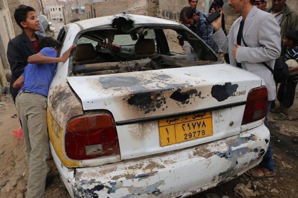 New photos have emerged posted by Nasser Arrabyee, Yemeni Journalist, Film-maker of (Yemen Alaan, meaning Yemen now) which claim to show evidence of their use on the streets of Sanaa yesterday. Arrabyee claimed 15 cars were damaged and showed photos of buildings allegedly hit. He said Yemen authorities were warning people not to touch remains of cluster bombs.
