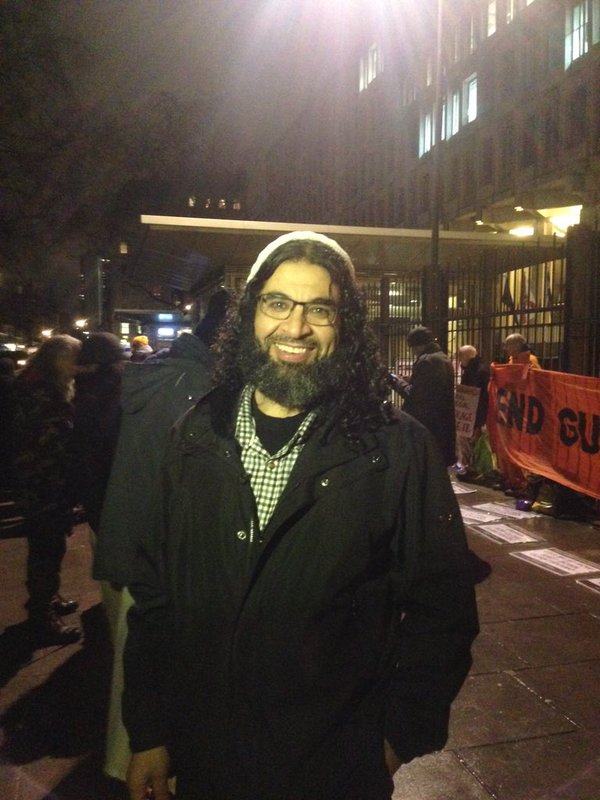 Shaker Aamer on his first protest since release from Gitmo (Image via David Nichols)