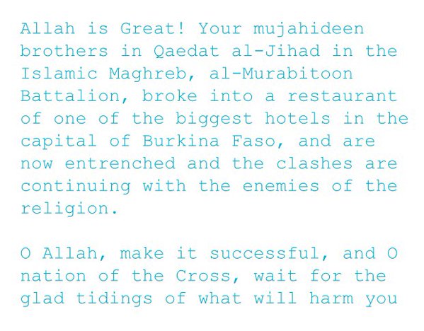 AQIM claim of responsibility, (image tweeted by Jon Williams, ABC)