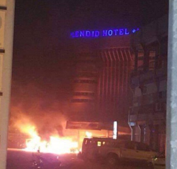 Al Qaeda in the Islamic Maghreb (AQIM) have released a statement claiming responsibility for an attack on the Splendid Hotel, Ouagadougou popular with UN staff and westerners. The attack began around 7.30 local time. An AFP reporter on site said the shooting was initiated by three armed men wearing turbans. Witnesses described gunmen storming the hotel, setting cars alight and firing into the air to keep crowds at bay before security forces arrived and a tense gun battle followed. Robert Sangare, the head of Yalgado Ouedraogo hospital told AFP,
