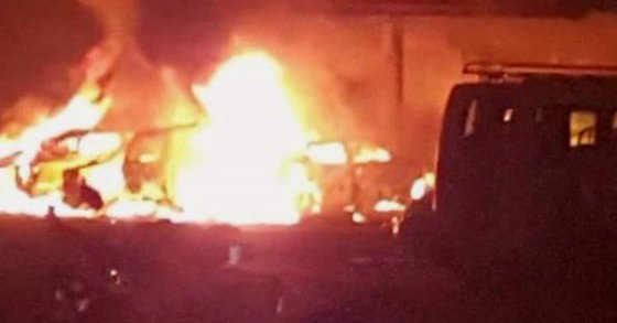 Cars ablaze outside Splendid Hotel (Image via BBC)