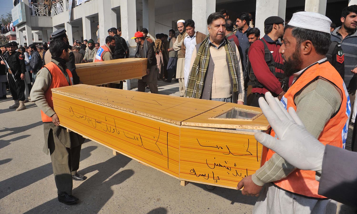 The Guardian reported, “Salman Khan, an operating theatre technician at the Charsadda district hospital, said the critically injured had head and chest wounds. Fifty of the most seriously wounded were moved to the larger Lady Reading hospital in Peshawar, the nearby provincial capital.”