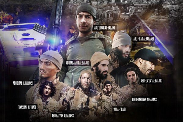 The video features the nine men including Bilal Hadfi (one of the attackers who died at Stade de France) and Samy Amimour (who blew himself up at the Bataclan) wearing camouflage outfits, the locations appears to be Iraq or Syria. They are identified by their nom de guerre (names used in war). Their nationalities are shown as 3 French, 4 Belgian and 2 Iraqis, known as Ali al Iraqi and Ukashah al Iraqi. The film conveys, “these are the last messages of the nine lions of the caliphate who were mobilised from their lairs to make a whole country, France, get down on its knees” The following link from the BBC gives further details of the Paris attackers,