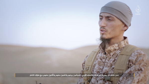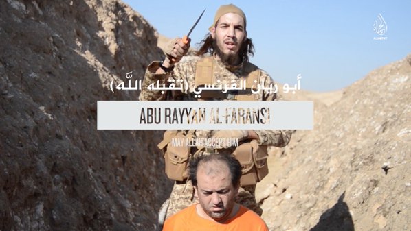 The men are shown beheading and shooting captives described as “apostates”. Samy Amimour is seen holding a captive’s head stating, “soon on the Champs-Elysees.” They also conduct military training. Abaaoud in contrast is not shown participating in executions but appears in a room where an IS flag can be seen in the background.