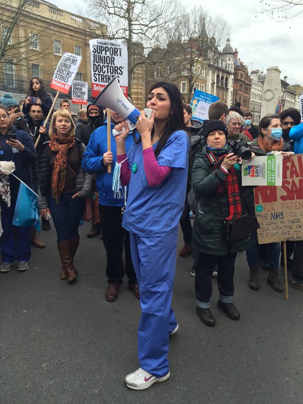 Marching against injustice in London today with our courageous Junior doctors and nurses — (Image via Peter Stefanovic)