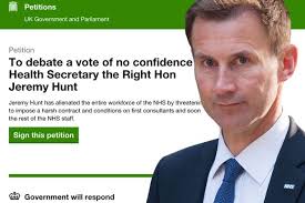 The public are so disillusioned with Hunt, many have now signed a petition set up 2 days ago calling for a vote of “no confidence” which may force a debate in parliament,