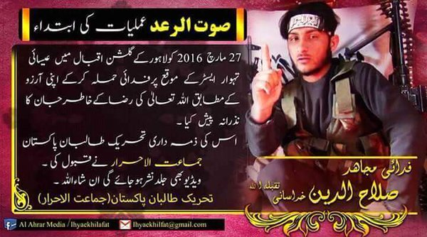TTP JA statement admitting responsibility for the Lahore bombing was posted on a social media account in the name of TTP JA spokesperson Ehsanullah Ehsan, it read,